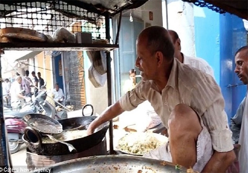 آشپز هندی که دستش در روغن 200 درجه نمی سوزد + تصاویر
