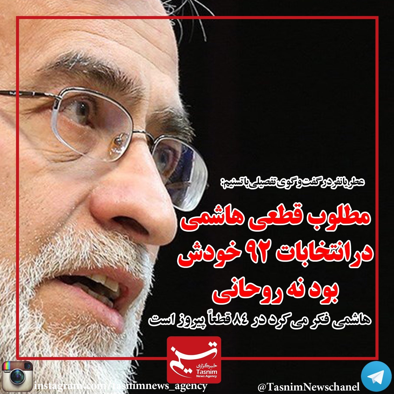 فوتوتیتر/عطریانفر: مطلوب قطعی هاشمی در انتخابات 92 خودش بود نه روحانی