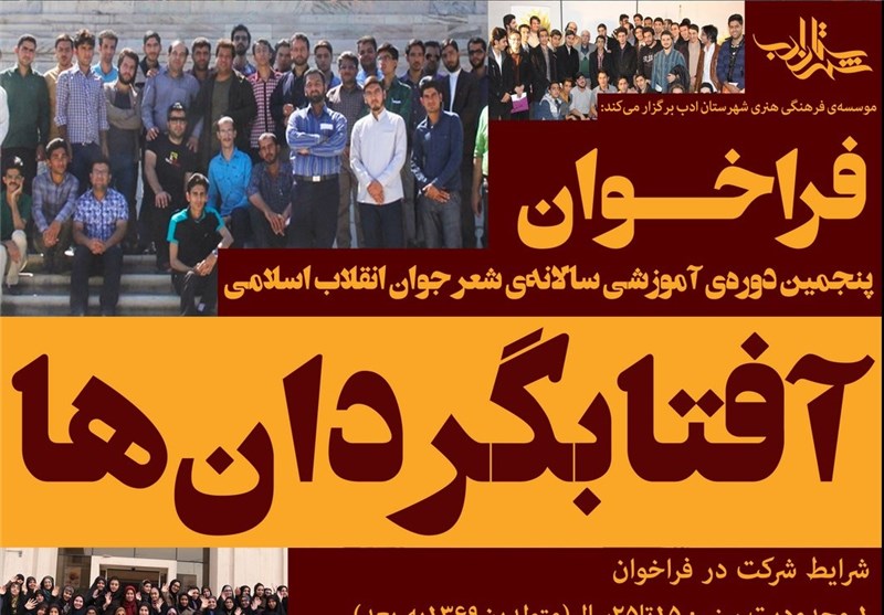 به گزارش خبرگزاری تسنیم، دفتر شعر مؤسسهی فرهنگی هنری شهرستان ادب همهساله در راستای پویایی شعر جوان و زمینه سازی رویش نسل جدید شاعران انقلاب اسلامی اقدام به برگزاری دورههای آموزشی سالانه شاعران جوان انقلاب اسلامی (آفتابگردانها) میکند.