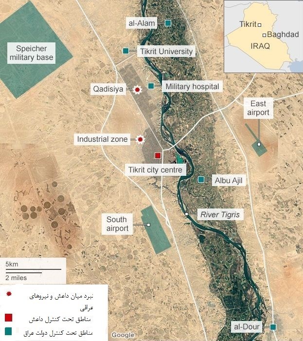 فاصله پایگاه نظامیان آمریکایی «لیبرتی» تا مرکز آموزشی الرمادی که تحت کنترل داعش درآمد