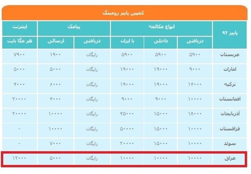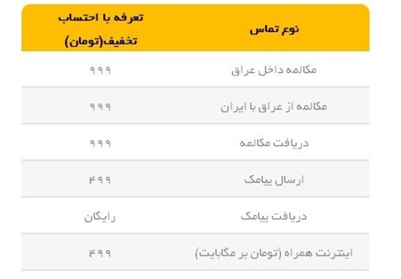 ریز تعرفه‌های ویژه اینترنت همراه، پیامک و مکالمه در سفر به عتبات عالیات برای حضور در گردهمایی عظیم اربعین حسینی(ع) نیز به شرح زیر است: