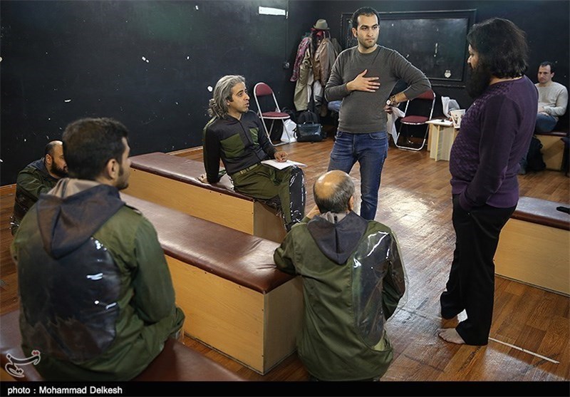 گروه نزدیک به یک ساعت درگیر تست لباس و عکسهایی برای بروشور میشوند و پس از آن تمرین را شروع میکنند، زارعی در ابتدای تمرین تذکری به بازیگران میدهد که: «ریتم کار در تمرینهای شب گذشته کند شده و امروز باید این مسئه را حل کنیم.»