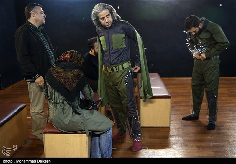حضور ما در تمرین نمایش «اروند خون» همزمان شده است با تست لباس بازیگران، لباسهایی که تقریبا شبیه لباس نظامی است با این تفاوت که بخشی از لباس پارچهای نیست و از تلق استفاده شده، البته لباس ایوب آقاخانی که شخصیت اصلی نمایش است کمی متفاوت به نظر میرسد و به آن دو یال پارچهای نیز اضافه شده است.
