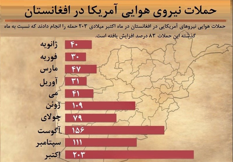 بر اساس این گزارش، نیروی هوایی آمریکا در افغانستان در ماه اکتبر میلادی بیشترین حملات را انجام داده‌ است.