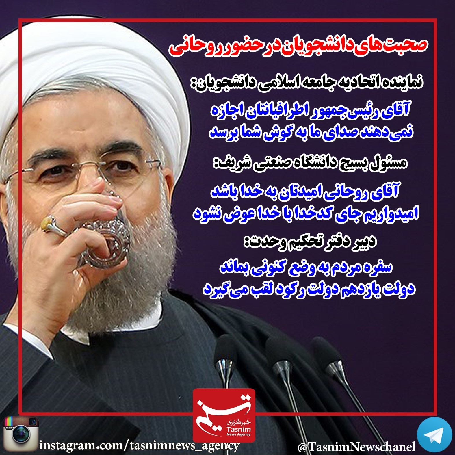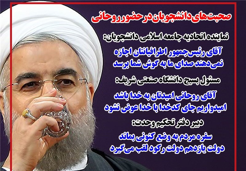 فوتوتیتر/صحبت های دانشجویان در حضور روحانی