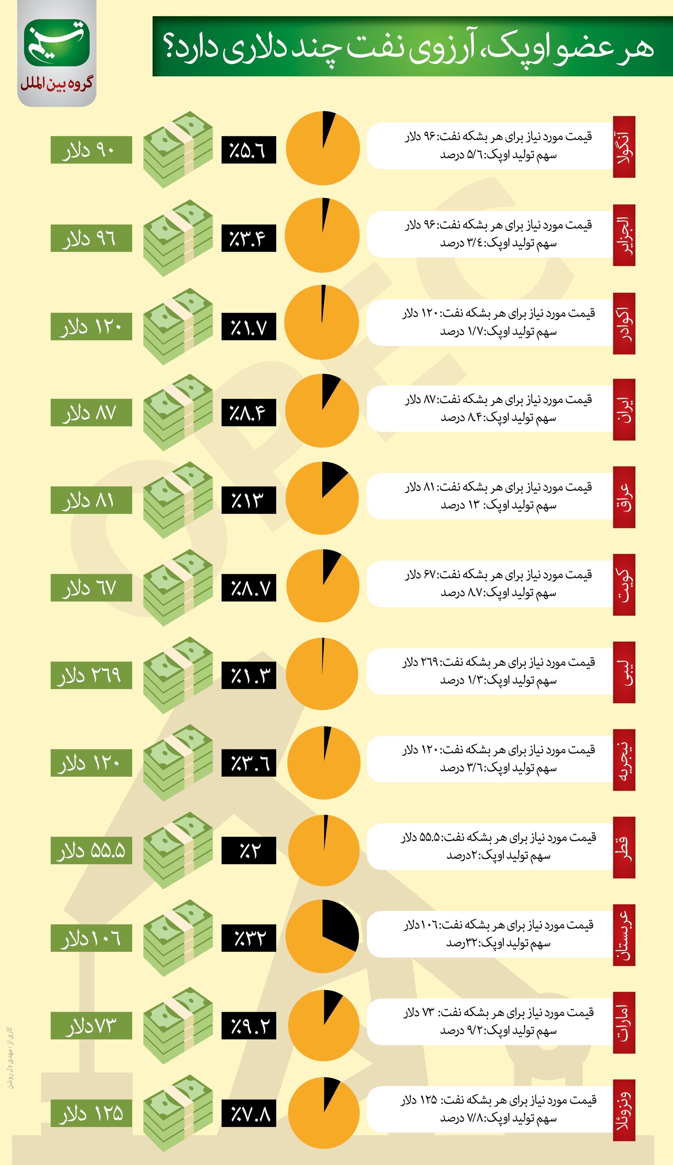 حالا صندوق بین المللی پول، با جمع بندی تحلیل کارشناسان و خود اعضای اوپک، قیمت مطلوب برای هر کدام از کشورها را بصورت تقریبی، در آورده است که می توانید آن را ملاحظه کنید.