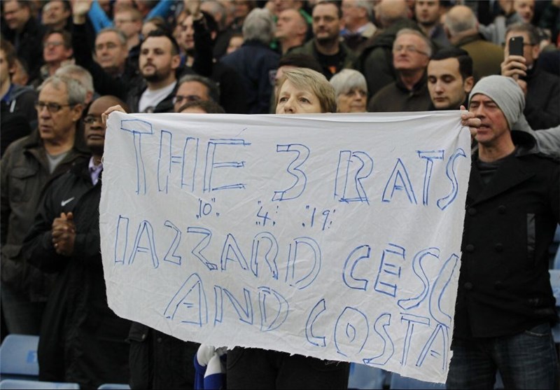 گروهی از هواداران در جریان این بازی در سکوها پلاکاردهایی در دست داشتند که روی آنها پیامهای با مضمون حمایت از مورینیو درج شده بود. در بخشی از ورزشگاه استمفوردبریج گروهی از هواداران پلاکاردی در دست داشتند که روی آن سه خائن یا به تعبیر آنها «سه موش» رختکن چلسی که با بازیهای ضعیفشان باعث اخراج آقای خاص شدند، معرفی شده بودند. روی این پلاکارد نوشته شده بود: سه موش: (ادن) ازار، سسک (فابرگاس) و (دیهگو) کاستا.