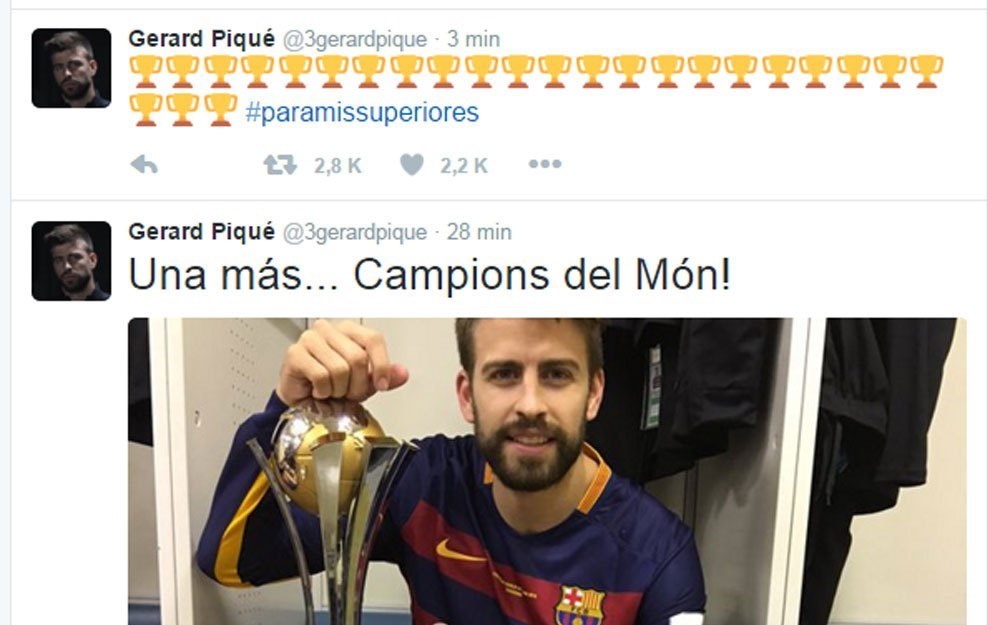 پیکه که امروز به بارسلونا برای کسب پنجمین جام قهرمانیاش در سال 2015 کمک کرد، پس از بازی کاتالانها و ریورپلاته دوباره به سراغ شبکههای اجتماعی رفت و در صفحه شخصی خود پیامی در پاسخ به توصیه گرانرو گذاشت.