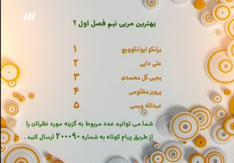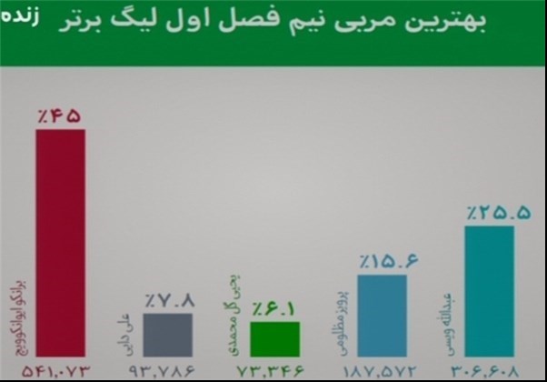 پس از آن نظر سنجی برنامه نود پخش شد که سوال آن اختصاص داشت به اینکه بهترین مربی نیم فصل اول چه کسی است.