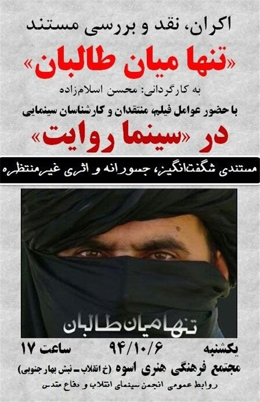 به گزارش خبرگزاری تسنیم، «تنها میان طالبان» تازه ترین مستند محسن اسلام زاده در جشنواره حقیقت با استقبال تماشاگران و سانسهای فوق العاده، فرصت اکران یافت.