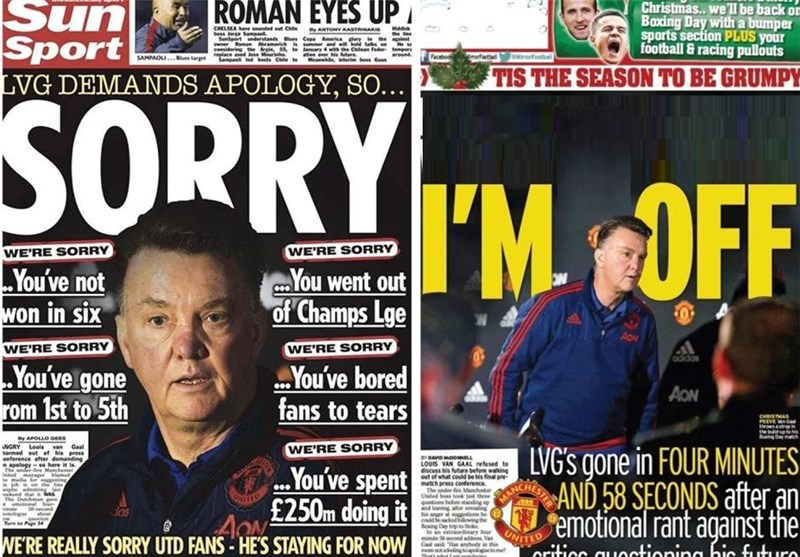 به گزارش خبرگزاری تسنیم، به دنبال انتقاد تند لوئیز فنخال از رسانههای انگلیسی در مصاحبه روز گذشته (چهارشنبه) خود که در آن از رسانهها خواسته بود به خاطر انتشار شایعه اخراج این مربی هلندی از منیونایتد از او عذرخواهی کنند، برخی از نشریات انگلیسی به درخواست او پاسخی جالب دادهاند.