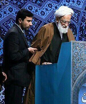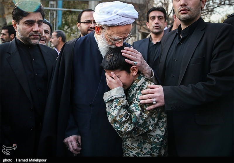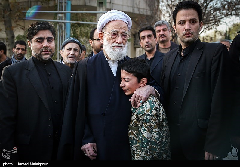 آیتالله امامی کاشانی و فرزند شهید فرامرزی در مراسم تشییع پیکر مطهر شهید