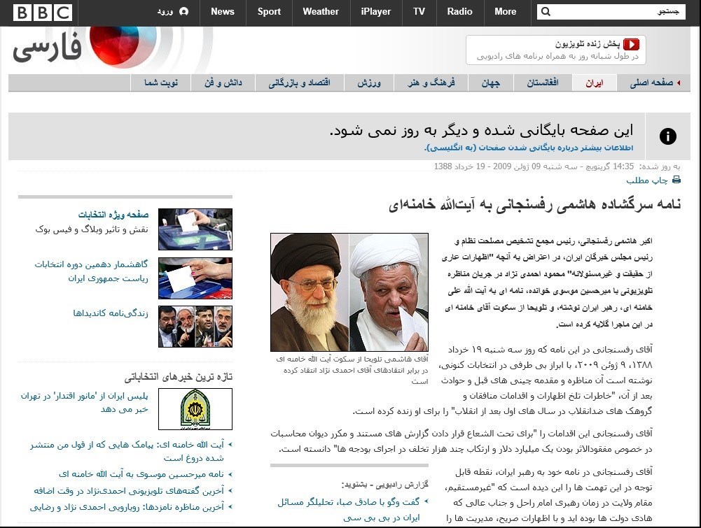 ***نامه آقای هاشمی به مقام معظم رهبری به سرعت به تیتر اول خبرگزاریهای خارجی تبدیل شد