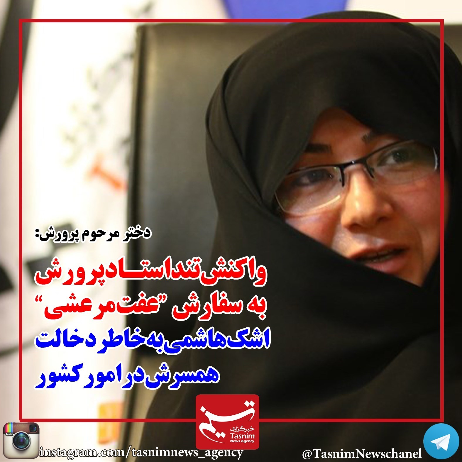 فوتوتیتر/دخترمرحوم پرورش:واکنش تنداستادپرورش به سفارش عفت مرعشی