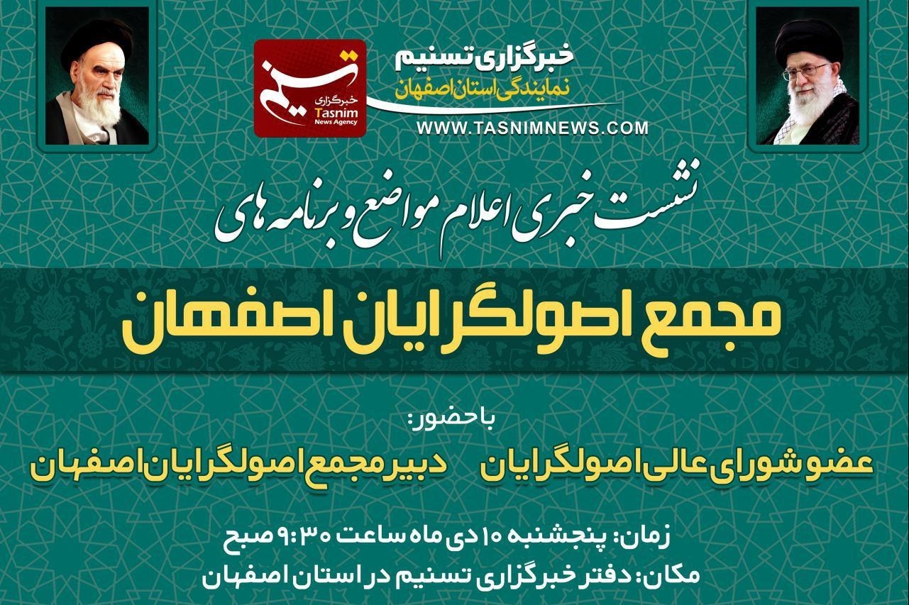 اعلام رسمی مواضع و برنامههای "مجمع اصولگرایان اصفهان" از برنامههای ویژه این نشست به شمار میرود. در این ویژهبرنامه منشور همکاری و همگرایی مجمع اصولگرایان استان اصفهان نیز با حضور خبرنگاران رسانههای گروهی رونمایی خواهد شد.