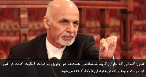 رئیسجمهور افغانستان نیز چندی قبل در خصوص تشکیل گروههای شبهنظامی به افراد مختلف در افغانستان هشدار داده بود و گفته بود که این افراد یا باید در چارچوب نیروهای نظامی افغان فعالیت کنند یا نیروهای امنیتی این کشور با آنها برخورد خواهند کرد.