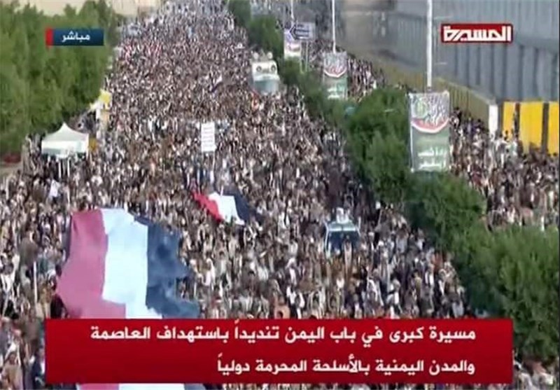 به گزارش گروه بین الملل خبرگزاری تسنیم به نقل از المسیره، راهپیمایی بزرگ مردم یمن در میدان باب الیمن در صنعا پایتخت این کشور در اعتراض به استفاده ائتلاف متجاوز سعودی از سلاحهای ممنوعه بین المللی آغاز شد.