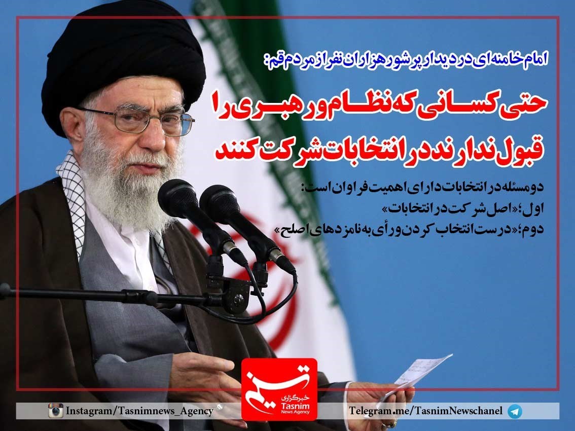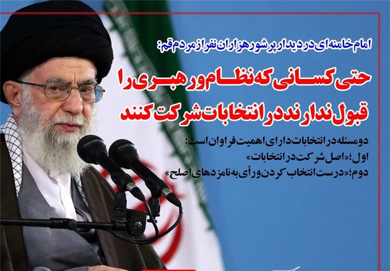 مقام معظم رهبری تاکید کردند: همه، حتی کسانی که نظام و رهبری را قبول ندارند در انتخابات شرکت کنند.