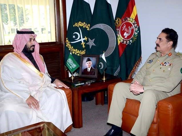 بر اساس گزارش روابط عمومی داخلی ارتش پاکستان (آی اس پی آر)، وزیر دفاع عربستان با رئیس ستاد ارتش پاکستان نیز دیدار و در مورد امنیت منطقهای و همکاری نظامی گفتوگو کرد.