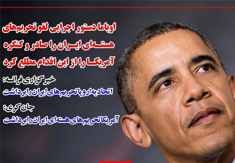 بعد از اینکه آژانس بین المللی انرژی اتمی پایبندی ایران به تعهدات خود را تایید کرد، از یک سو اوباما دستور اجرایی لغو تحریم های ایران را اعلام کرد و اتحادیه اروپا نیز تحریم های ایران را برداشت.