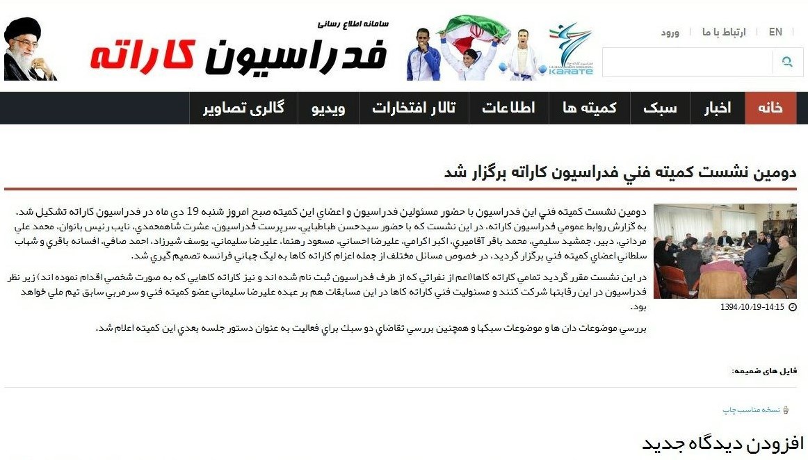 در خبر جلسه کمیته فنی فدراسیون که در تاریخ 19 دی روی سایت فدراسیون قرار گرفته شده به صراحت اعلام شده که «تمام نفراتی که از سوی فدراسیون برای حضور در این مسابقات ثبت نام شدهاند و نیز کاراتهکاهایی که به صورت شخصی اقدام نمودهاند زیر نظر فدراسیون در این رقابتها شرکت میکنند و مسئولیت فنی کاراتهکاها در این مسابقات نیز بر عهده علیرضا سلیمانی است».