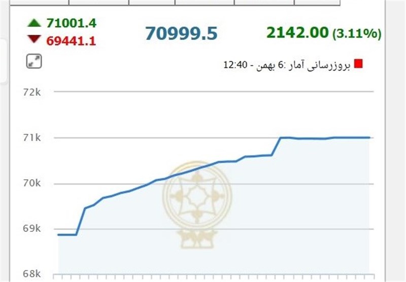 شاخص بورس هم با ثبت رشد 2142 واحدی و تحت تاثیر مثبت نمادهای معاملاتی پارسان، فارس، رمپنا، وغدیر، همراه، اخابر و وامید به ارتفاع 70 هزار و 991 واحد صعود کرد.