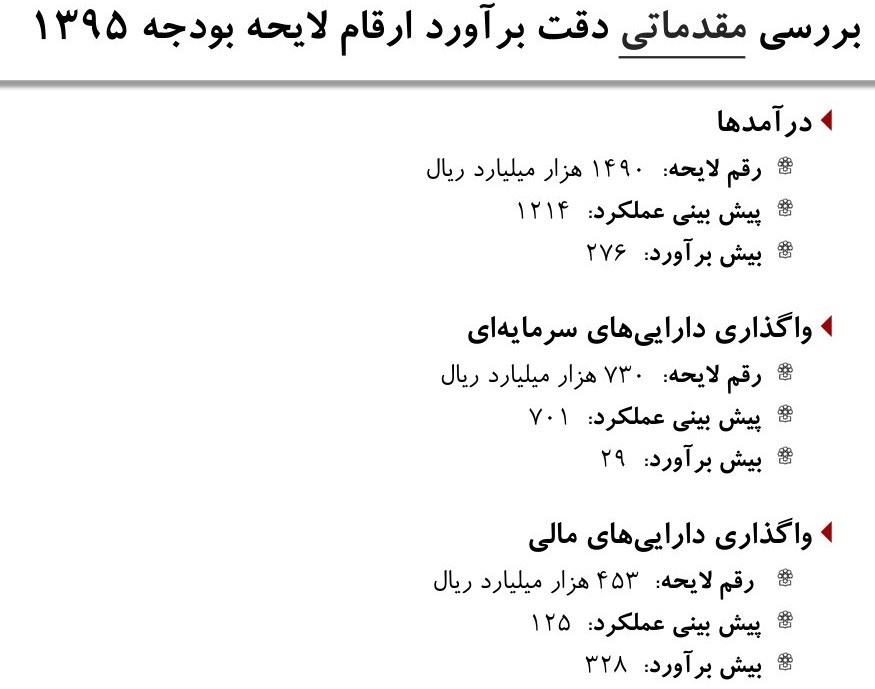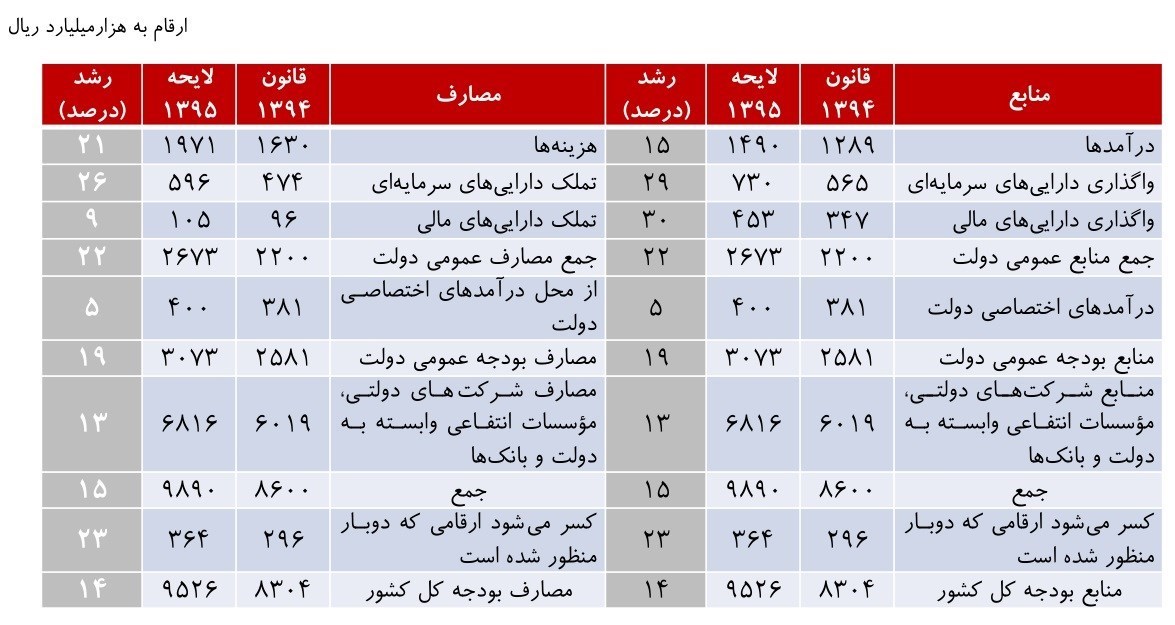 63 هزار میلیارد تومان درآمد تخیّلی در بودجه 95 + جدول