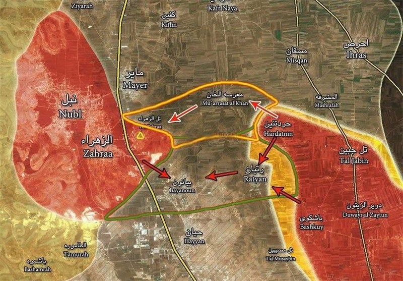 وی افزود مهمترین مانع در نبردهای کنونی در حومه شمالی حلب، تپههای رتیان معرسته است که تا کفرنایا امتداد دارد و آزادسازی معرسته الخان و رتیان و تامین امنیت اطراف آنها و اتصال آنها به نبل و الزهراء به این معنا خواهد بود که زمین مقابل ارتش سوریه تا شمال و تا مرزهای ترکیه بدون هیچ گونه مانع جغرافیایی باز است.