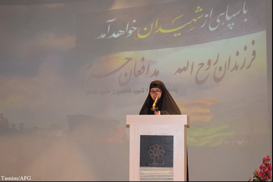 در این مراسم که در پاسداشت 100 شهید مدافع حرم از شیرمردان افغانستانی ساکن مشهد، برگزار شده بود، پس از اجرا تئاتری در مورد شهدای مدافع حرم، «سعید قاسمی» با بیان این که امام خمینی (ره) کسی بود که نظم شرق و غرب را بهم ریخت و در طول یک دهه، راه و روش چگونه زیستن، چگونه مبارزه کردن و در آخر چگونه مردن را به ما یاد داده، گفت: براساس تفکر «روح الله» چیزی به عنوان افغانستان مستقل نداریم و اسلام باید بدون مرز در تمام کشورها باشد اما هنوز هم با پدیده «پسوند گذاری» سروکار داریم.