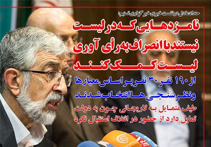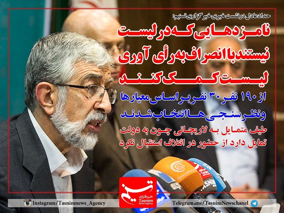 فوتوتیتر/حدادعادل:نامزدهایی که در لیست نیستند با انصراف به رای آوری لیست کمک کنند