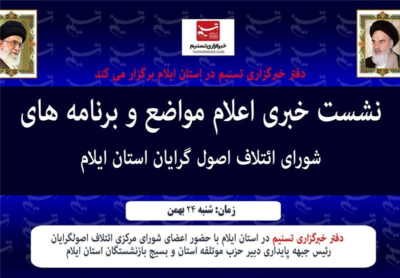 به گزارش خبرگزاری تسنیم از ایلام، نشستخبری اعلام مواضع و برنامههای شورای اصولگرایان استان ایلام در انتخابات پنجمین دوره مجلس خبرگان رهبری و دهمین دوره مجلس شورای اسلامی شنبه 24بهمنماه بهمیزبانی دفتر خبرگزاری تسنیم در استان ایلام برگزار میشود.