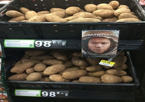 به گزارش گروه رسانههای خبرگزاری تسنیم، اگر فیلم «مریخی» را ندیده اید، احتمالا به نظرتان عجیب برسد که یک DVD در کنار سیب زمینی ها به فروش برسد! اما برای آن هایی که دیده اند، ایده شرکت سیب زمینی آلبرت بالترت برای استفاده از چهره مت دیمون و فیلمش برای فروش سیب زمینی ها، یک ایده خلاقانه است. در این فیلم مارک واتنی ، فضانوردی بود که به تصور اینکه بر اثر حادثه ای در مریخ کشته شده بود ، توسط دیگر فضانوردانی که به این سیاره رفته بودند در مریخ جا گذاشته شد و وی برای ادامه حیات دست به کاشت سیب زمینی در این سیاره زد.