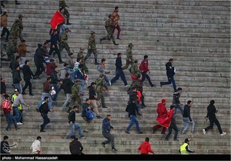 * با وجود آغاز بازی همچنان تماشاگران زیادی در حال ورود به ورزشگاه هستند.