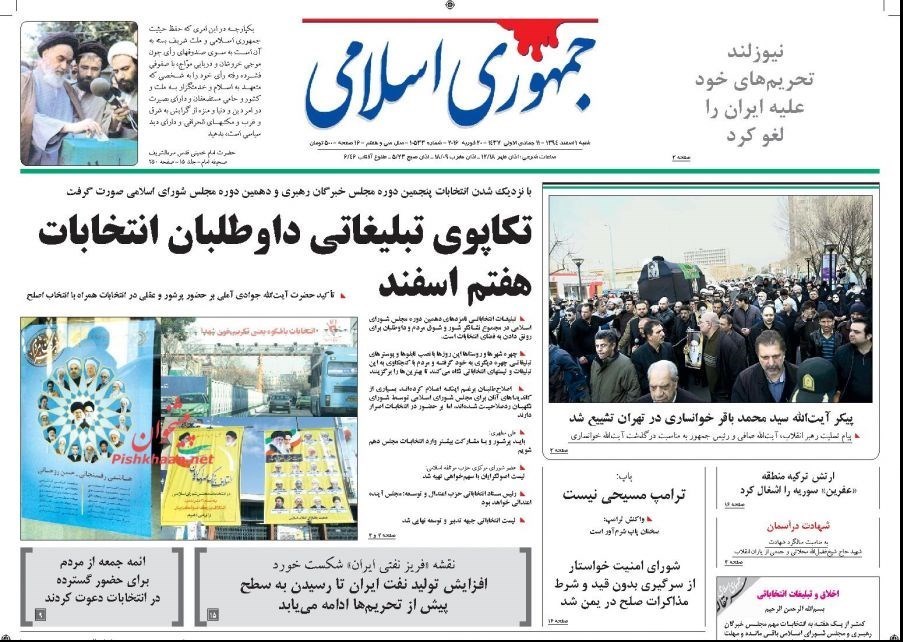 منتخب تصاویر صفحه اول روزنامه‌های امروز شنبه 1 اسفند