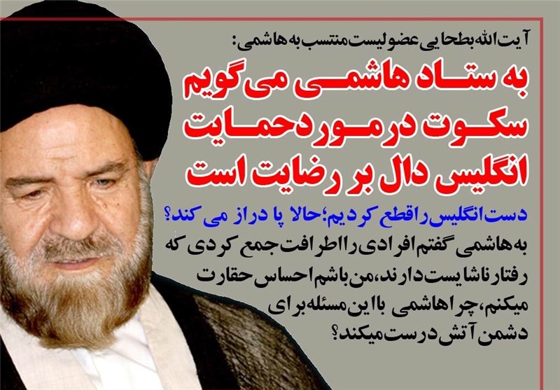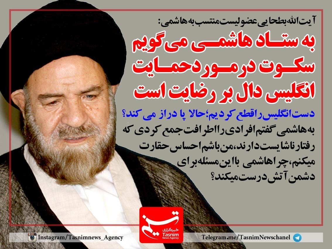 فوتوتیتر/آیت‌الله بطحایی:به ستاد هاشمی می گویم سکوت در مورد حمایت انگلیس دال بر رضایت است