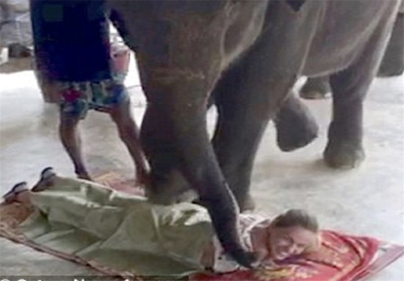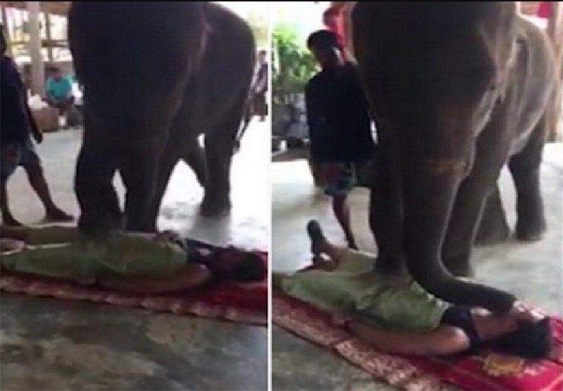 در این روش، فیلهای سنگین وزن با لگدکردن عضلات گردشگران، آنها را ماساژ میدهند.
