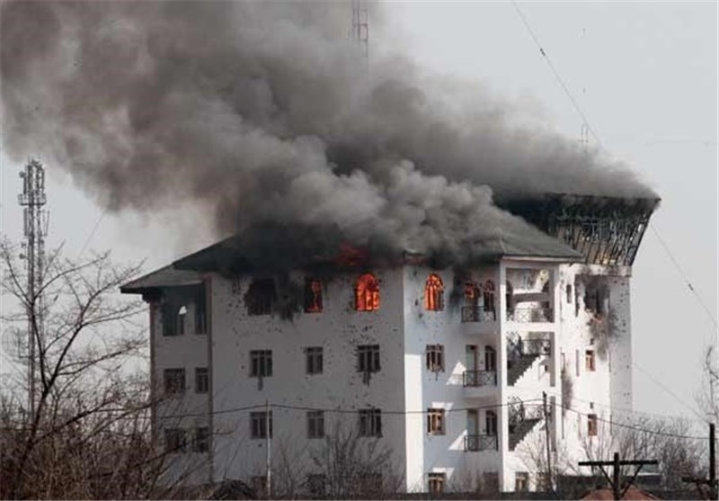 نیروهای امنیتی هند ساختمان را محاصره کردند و تبادل آتش با افراد مسلح آغاز شد.