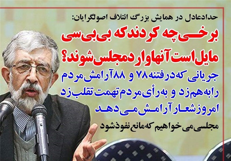 فوتوتیتر/حدادعادل:برخی چه کردند که بی بی سی مایل است آنها وارد مجلس شوند؟