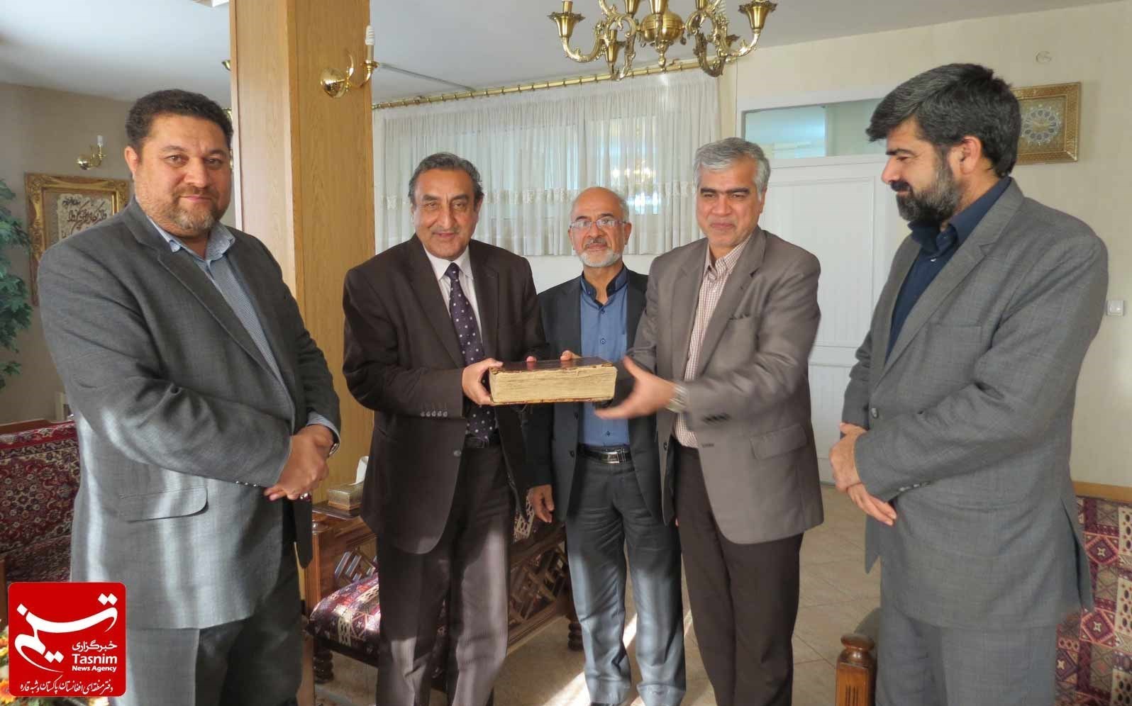 «تصویر تحویل نسخه خطی به مقامات سرکنسولگری افغانستان در محل نمایندگی وزارت امور خارجه در شمال و شرق کشور»
