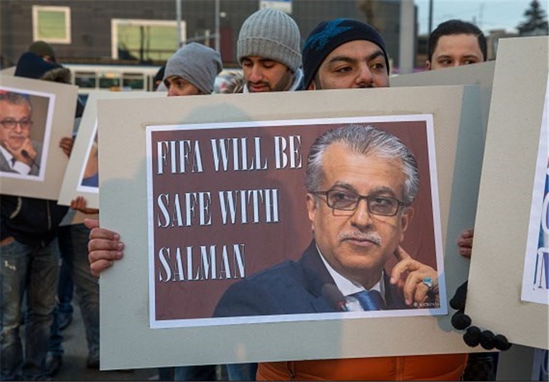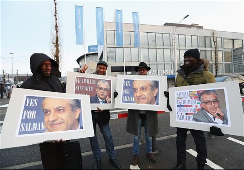 همچنین شماری از حامیان شیخ سلمان، نامزد بحرینی انتخابات در مقابل کنگره فیفا تجمع کردند و با در دست داشتن تصاویر رئیس کنونی کنفدراسیون فوتبال آسیا از او حمایت کردند.
