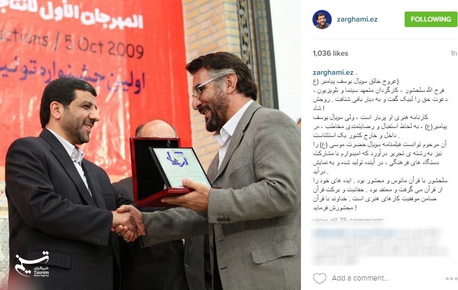 عزت‌الله ضرغامی رئیس سابق سازمان صدا و سیما به مناسبت درگذشت فرج الله سلحشور مطلبی را با عنوان «عروج خالق سریال یوسف پیامبر (ع)» در صفحه شخصی اینستاگرامش منتشر کرد.