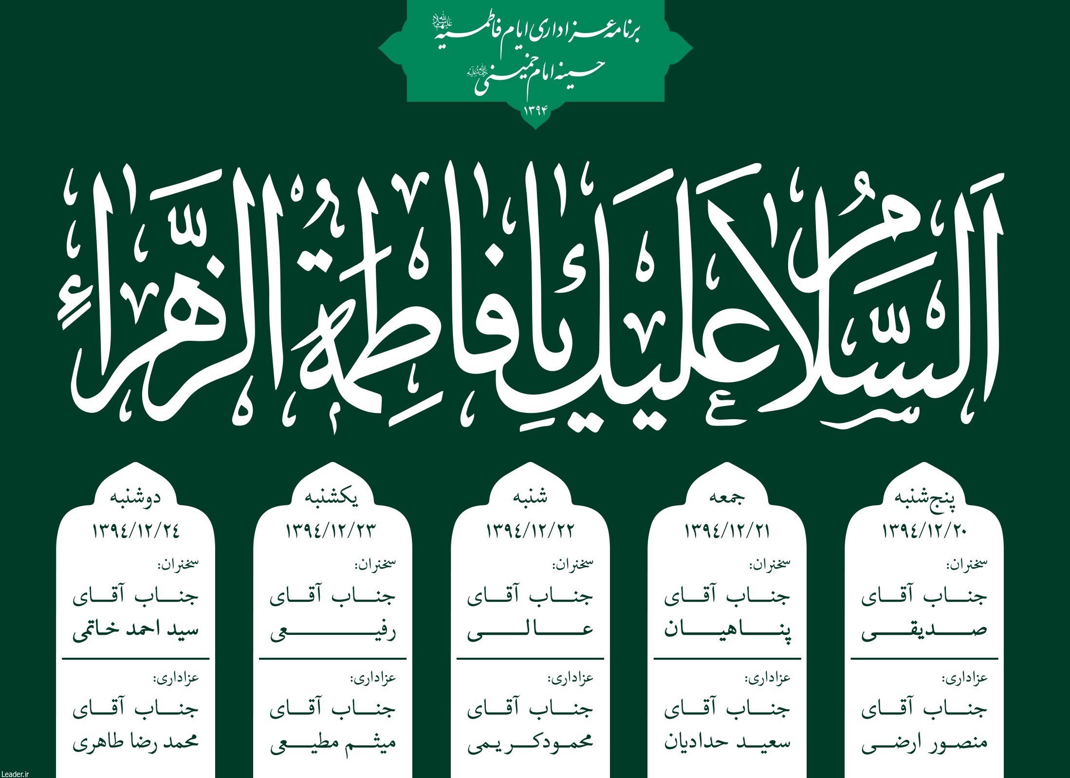 پوستر/برنامه عزاداری ایام فاطمیه (س) در محضر رهبر انقلاب