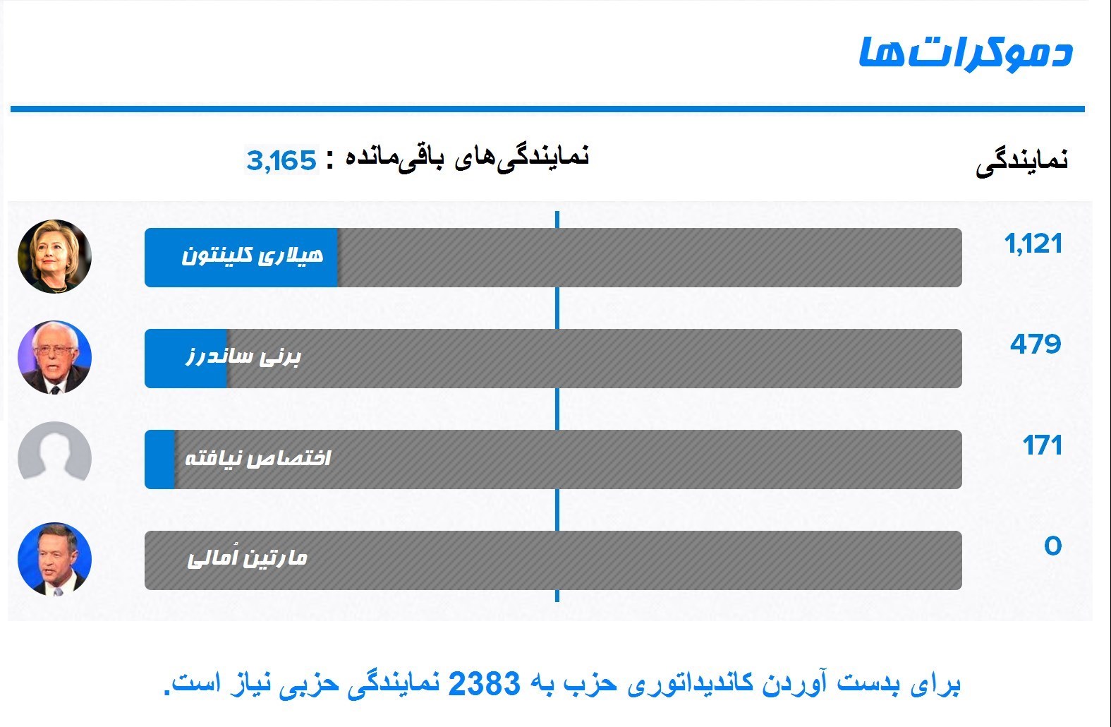 روز گذشته دو نامزد دموکراتها، برنی سندرز و هیلاری کلینتون در سه ایالت کانزاس، نبراسکا و لوئیزیانا با هم رقابت کردند و این در حالی است که هیلاری کلینتون از پیروزی در رأیگیریهای سهشنبه گذشته که همزمان در 11 ایالت برگزار شد، اعتماد به نفس بیشتری گرفته است. نتایج شب گذشته نشان داد که کلینتون اگرچه در کانزاس و نبراسکا به برنی سندرز باخت، اما توانست در ایالت لوئیزیانا پیروز میدان شود، و تعداد نمایندگیهای حزبی بیشتری نسبت به رقیبش کسب کند.
