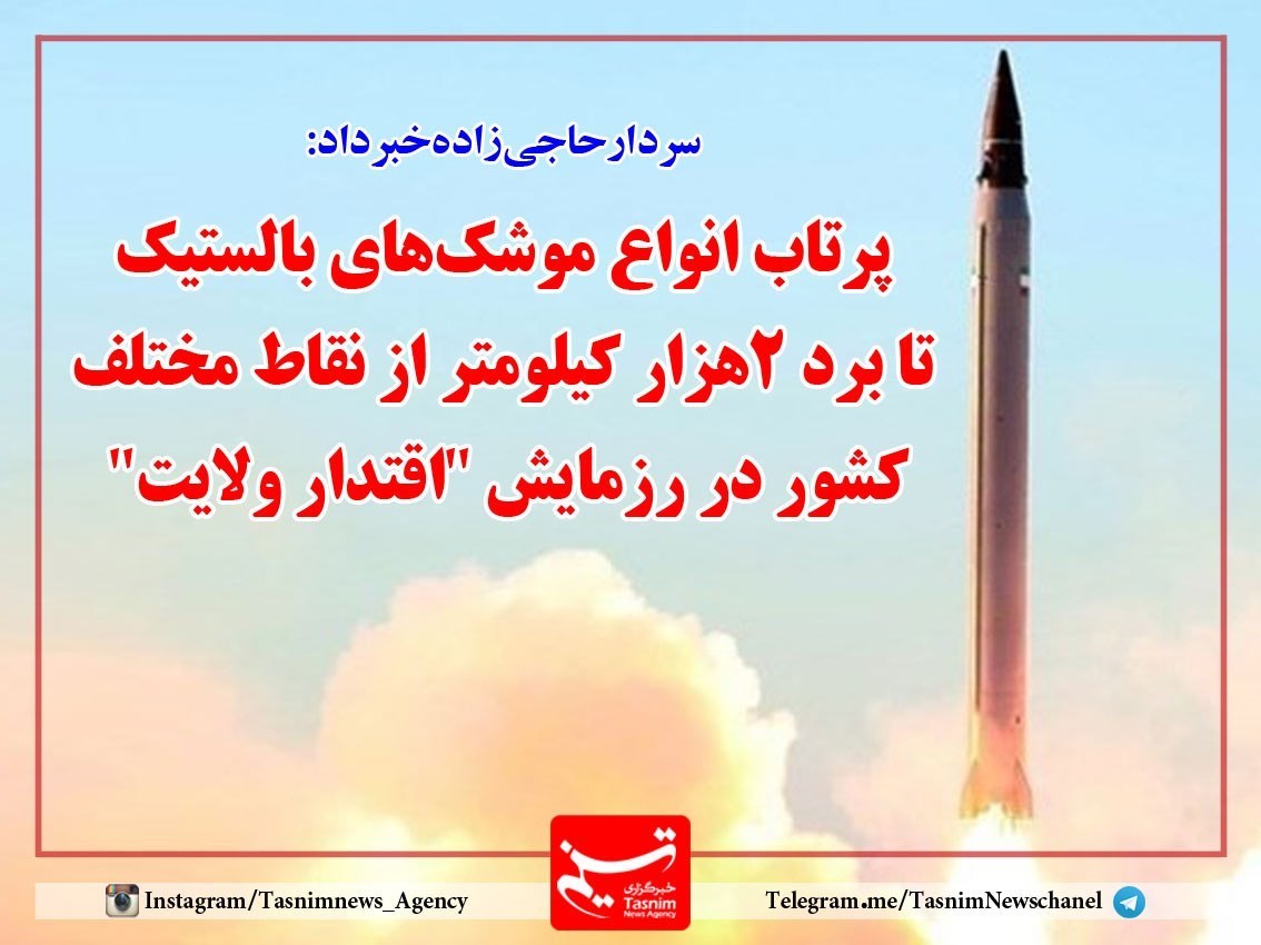 فرمانده هوافضای سپاه پاسداران انقلاب اسلامی از پرتاب انواع موشک‌های بالستیک با بردهای 2000، 800، 500 و 300 کیلومتر از نقاط مختلف کشور در رزمایش اقتدار ولایت خبر داد.