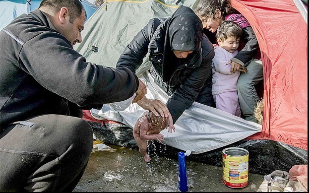 به گزارش گروه بینالملل خبرگزاری تسنیم به نقل از تلگراف، در ایدومنی واقع در مرز یونان و مقدونیه هزاران پناهجو همچنان حضور دارند. در کمپهایی که با حداقل امکانات برای اسکان پناهجویان برپا شده است کودکانی به دنیا میآیند که هیچ آینده مشخصی برای آنها نمیتوان تصور کرد. در یکی از این موارد عکاسی موفق به شکار صحنه شستشوی نوزادی تازه متولد شده بدون کمترین امکانات و در شرایطی ابتدایی شده است.