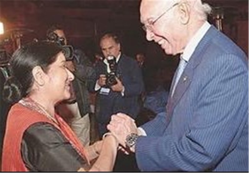 به گزارش دفتر منطقهای خبرگزاری تسنیم، «سرتاج عزیز» مشاور امور بینالملل نخستوزیر پاکستان و «سوشما سوراج» وزیر امور خارجه هند در حاشیه نشست وزرای امور خارجه کشورهای عضو اتحادیه همکاریهای منطقهای جنوب آسیا (سارک) در «نپال» بصورت غیر رسمی دیدار کردند.