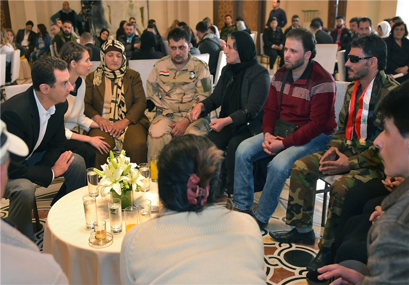 به گزارش گروه بین الملل خبرگزاری تسنیم، بشار اسد رئیس جمهوری سوریه و همسرش، اسماء اسد میزبان جمعی از مجروحان ارتش سوریه و مادران آنها بهمناسبت گذشت یک سال از آغاز اجرای برنامه موسوم به جریح الوطن (مجروح وطن) و همچنین روز مادر بود.