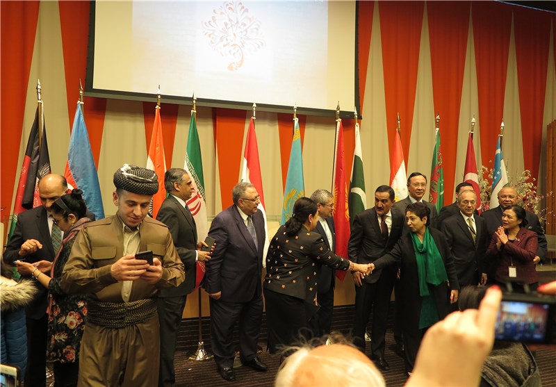 در مراسم امسال که مانند سالهای گذشته به میزبانی و مدیریت نمایندگی کشورمان برگزار گردید و با استقبال دیپلماتها و شهروندان 12 کشور همراه بود، غلامعلی خوشرو سفیر و نماینده دائم جمهوری اسلامی کشورمان طی سخنانی نوروز را یک پدیده جامع فرهنگی و اجتماعی توصیف کرد که منعکس کننده شادی، باهم بودن، مراقبت از طبیعت، میانه روی و پاکیزگی خانه و خویش و همچنین پیام آور امید، شادی، نور، زندگی و عشق است.