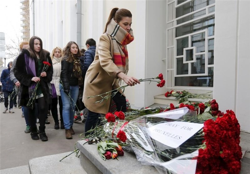 مردم در کنار سفارت بلژیک در شهر مسکو با قرار دادن گل یاد قربانیان را گرامی داشتند.