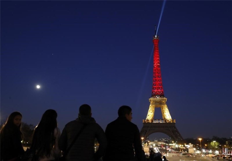 تغییر رنگ برج ایفل به پرچم بلژیک برای احترام به قربانیان حملات بروکسل
